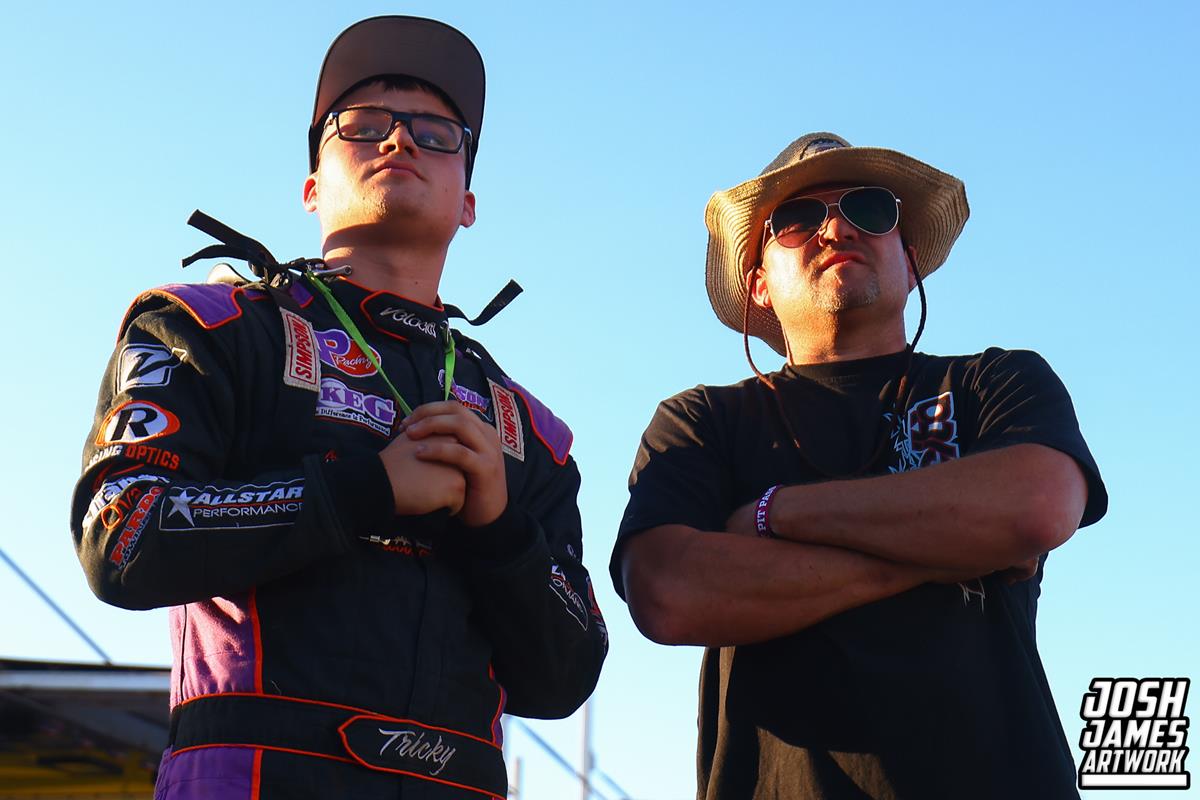 With 107 entries signed in for the first night of preliminary action, Chamberlain raced his way into the first $12,000-to-win feature and placed 25th. The following night, Tristan did not make a prelim after finishing 10th in his shootout race.