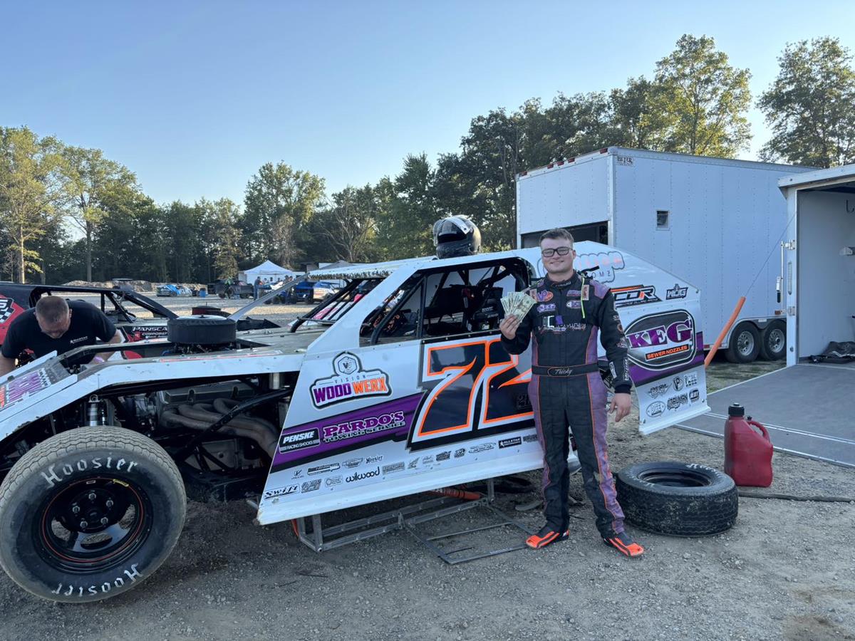 Chamberlain went third-to-first in his heat race which put him on the second-row of the 20-lap main event. Tristan led all but the first two laps en route to his first UMP Modified victory of the season. He took home a $876 payday over Dylan Woodling and Zeke McKenzie.