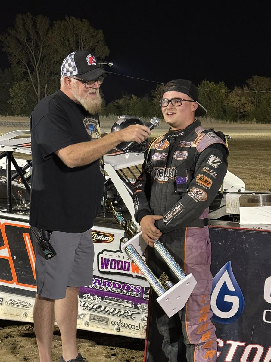 Chamberlain set fast time among a 23-car field and made up two spots in his heat race to earn the pole position for the A-Main. Tristan led flag-to-flag in the 25-lap feature and picked up a $2,000 payday for his efforts.